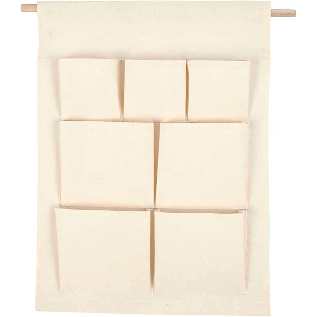 Lommeophæng, natur, H: 46 cm, B: 34 cm, 1 stk.. Praktisk organizer med lommer i kraftig kanvas med plastbelagt bagside for bedre stabilitet. Løbegang i toppen af ophænget med rundpind i træ til ophæng. Ideel til opbevaring af mange former for småting, so